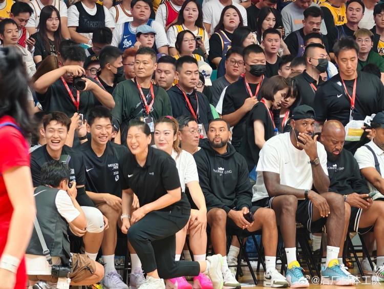 赵睿、崔永熙和李梦与詹姆斯坐在一起,而跟随美高球队参加热身赛的张博源也出现在现场。